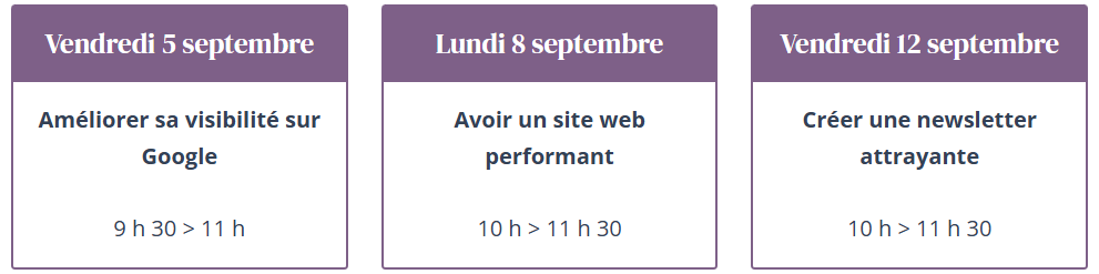 Et pour les personnes qui veulent travailler leur comm et leur marketing, on a beaucoup de rendez-vous à la rentrée !